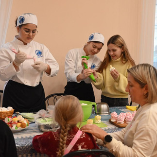 Під пильним і турботливим наглядом наших студентів усі змогли спробувати себе в ролі кондитера, власноруч прикрасити заварні кошики та відчути радість творчості